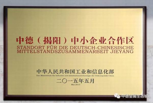 中德金屬生態(tài)城獲得國家工信部“中德(揭陽)中小企業(yè)合作區(qū)”授牌,成為華南地區(qū)首個(gè)中德中小企業(yè)合作區(qū)。