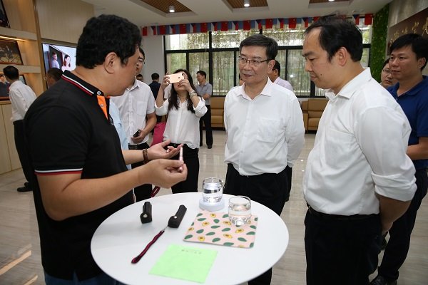 在廣東大宇環(huán)保高新技術(shù)有限公司做環(huán)?萍紕(chuàng)新產(chǎn)業(yè)這一調(diào)研工作時(shí),黃副省長(zhǎng)聽取工作人員講解水凈化筆的創(chuàng)新技術(shù),觀看水凈化筆演示殺菌消毒時(shí)指出:要讓大宇水凈化筆充分發(fā)揮它的作用,讓更多人知道這款產(chǎn)品不僅僅作用在凈水殺菌上。
