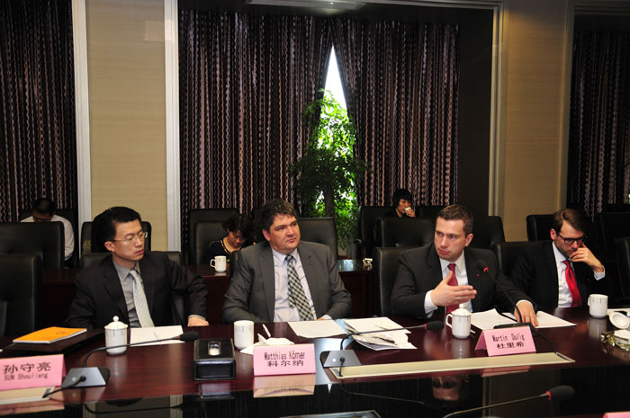 市長(zhǎng)助理麥延厚首先對(duì)杜里希一行的到來(lái)表示熱烈歡迎。隨后雙方共同聽(tīng)取了中德金屬生態(tài)城城市規(guī)劃設(shè)計(jì)報(bào)告,對(duì)金屬生態(tài)城項(xiàng)目的總體情況有進(jìn)一步的了解。杜里希先生在產(chǎn)品質(zhì)量、教育模式、基礎(chǔ)設(shè)施、能源消耗等方面向我方代表介紹了的德國(guó)工業(yè)政策,以及德國(guó)企業(yè)家在中國(guó)太倉(cāng)投資的經(jīng)驗(yàn)與遇到的問(wèn)題。杜里希先生表示,希望中德雙方在平等的層面上共商合作、相互借鑒,并以教育培訓(xùn)和產(chǎn)品質(zhì)量作為切入點(diǎn),最終實(shí)現(xiàn)中德金屬生態(tài)城的宏偉藍(lán)圖。