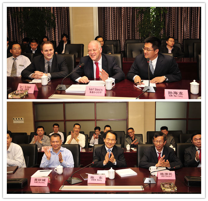 沙爾平先生表示,很高興看到短期內(nèi)中德金屬生態(tài)城建設(shè)取得實質(zhì)性的進(jìn)展。揭陽有很好的金屬產(chǎn)業(yè)基礎(chǔ),中德雙方的合作基礎(chǔ)堅實。雙方應(yīng)該將充分發(fā)揮資源優(yōu)勢,借鑒德國先進(jìn)的管理經(jīng)驗和高精尖的技術(shù)優(yōu)勢,引進(jìn)德國雙元制職業(yè)教育體系,進(jìn)一步強化合作,把中德金屬生態(tài)城打造成為有國際知名度和影響力的大項目。