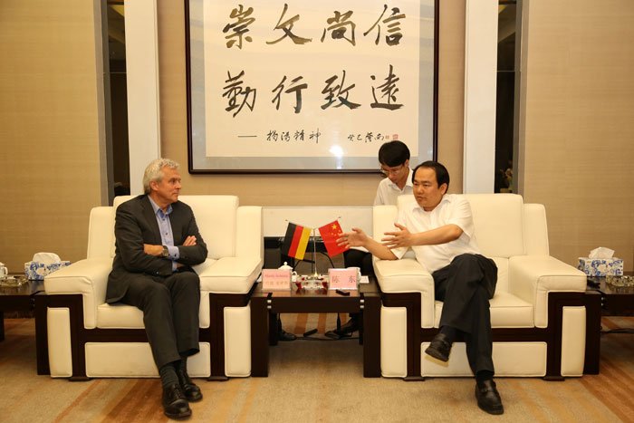 2014年7月24日至25日,德國維斯塔(WISTA)公司總裁哈迪·史密斯(Hardy Schmitz)一行來揭考察中德金屬生態(tài)城項目。揭陽市委副書記、市長陳東會見了哈迪·史密斯一行,雙方就加強園區(qū)管理合作等事宜進行深入交流,并達成一攬子工作細則。