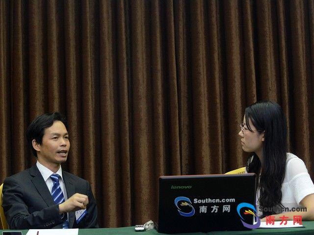中德金屬集團(tuán)有限公司副總裁劉飛舟(左)接受南方網(wǎng)專訪。(攝影:念青)
