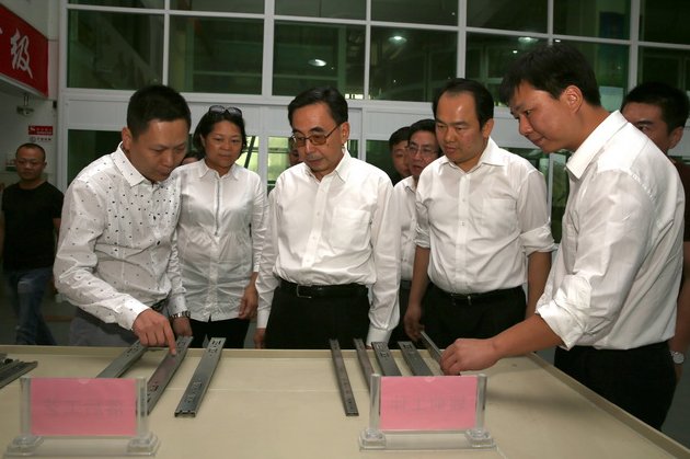 2015年10月13日,廣東省長朱小丹到入園企業(yè)揭陽宏利金屬表面處理有限公司參觀考察(中德金屬集團 攝)