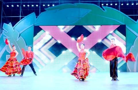 銀星廣場上,燈光閃爍,舞臺(tái)上,來自歐洲的歌舞團(tuán)用精彩的舞蹈表演吸引了大批觀眾觀看,歌舞團(tuán)以一曲形式開放自由的踢踏舞開啟表演,舞者跟隨舞曲的節(jié)奏,通過趾尖與腳跟的相互配合,發(fā)出響亮的“踢踢踏踏”聲音,活潑歡快的表演獲得臺(tái)下觀眾的陣陣掌聲。隨后,光影陸離的光影舞、富有異域風(fēng)情的肚皮舞等精妙的節(jié)目更是讓大家贊嘆不已,現(xiàn)場觀眾紛紛拿出手機(jī)記錄一個(gè)個(gè)精彩的瞬間,整個(gè)廣場成為一片歡樂的海洋。