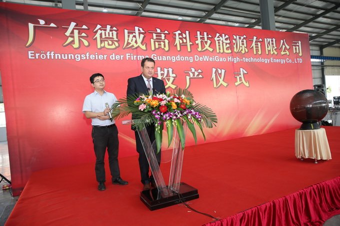 投產(chǎn)儀式上,市政府副秘書長李志堅表示,近年來,揭陽深入貫徹“一帶一路”和“創(chuàng)新驅(qū)動”發(fā)展戰(zhàn)略,不斷深化對德合作,全方位支持中德金屬生態(tài)城建設(shè)。如今,園區(qū)建設(shè)全面加快,入園企業(yè)德威高公司的投產(chǎn)便是一個很好的范例。當前,國家高度重視并鼓勵資源的循環(huán)利用和環(huán)境保護,資源高效利用的市場十分廣闊。他希望德威高公司要以投產(chǎn)運行為起點,瞄準國際一流,依托中德金屬生態(tài)城這一平臺,深化與德國等發(fā)達國家的技術(shù)合作,把企業(yè)打造成為資源高效開發(fā)利用的先行者。他還強調(diào),各級有關(guān)部門要進一步強化服務(wù)意識,為公司創(chuàng)造寬松的發(fā)展環(huán)境,推動更多中德合作項目落地。